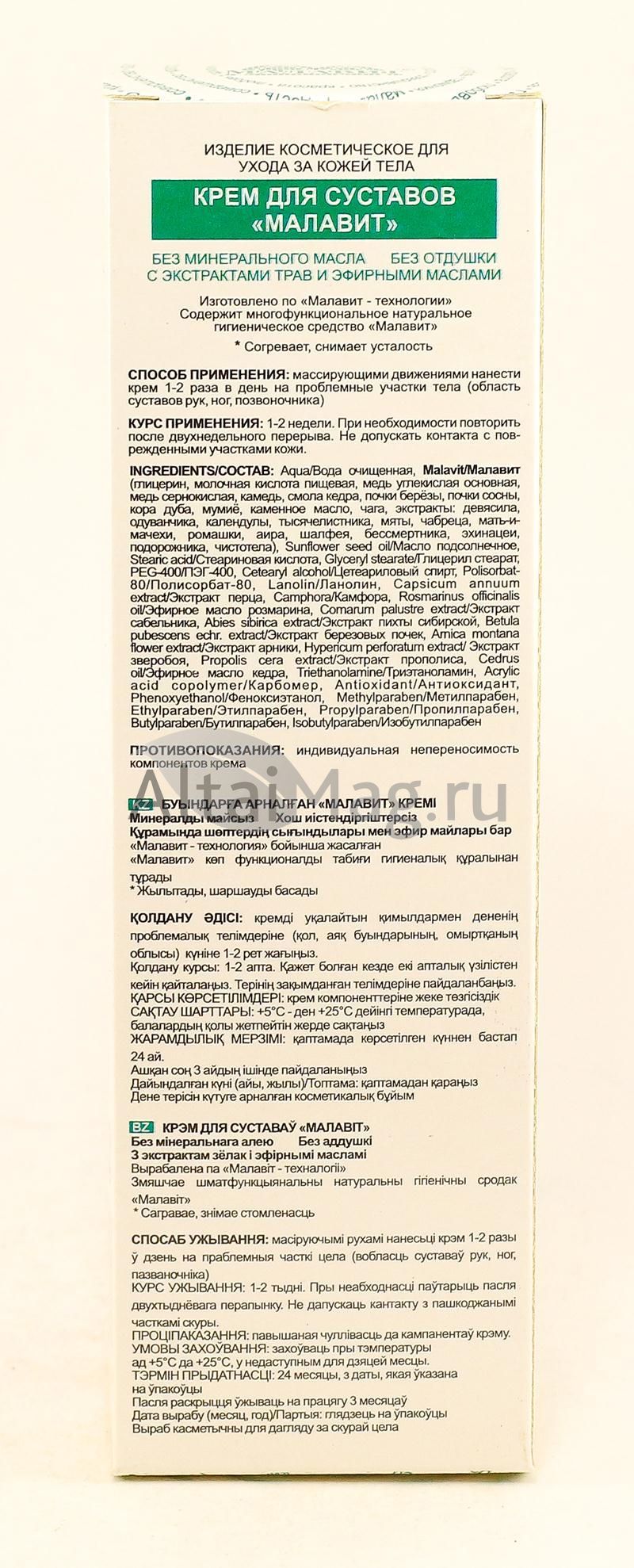 - Купите Крем для суставов Малавит 100 мл в Мытищах по доступной цене 370 ₽ с доставкой на дом или заберите Ваш заказ в Мытищах из ближайшего пункта выдачи, сделав заказ на AltaiMag.ru.